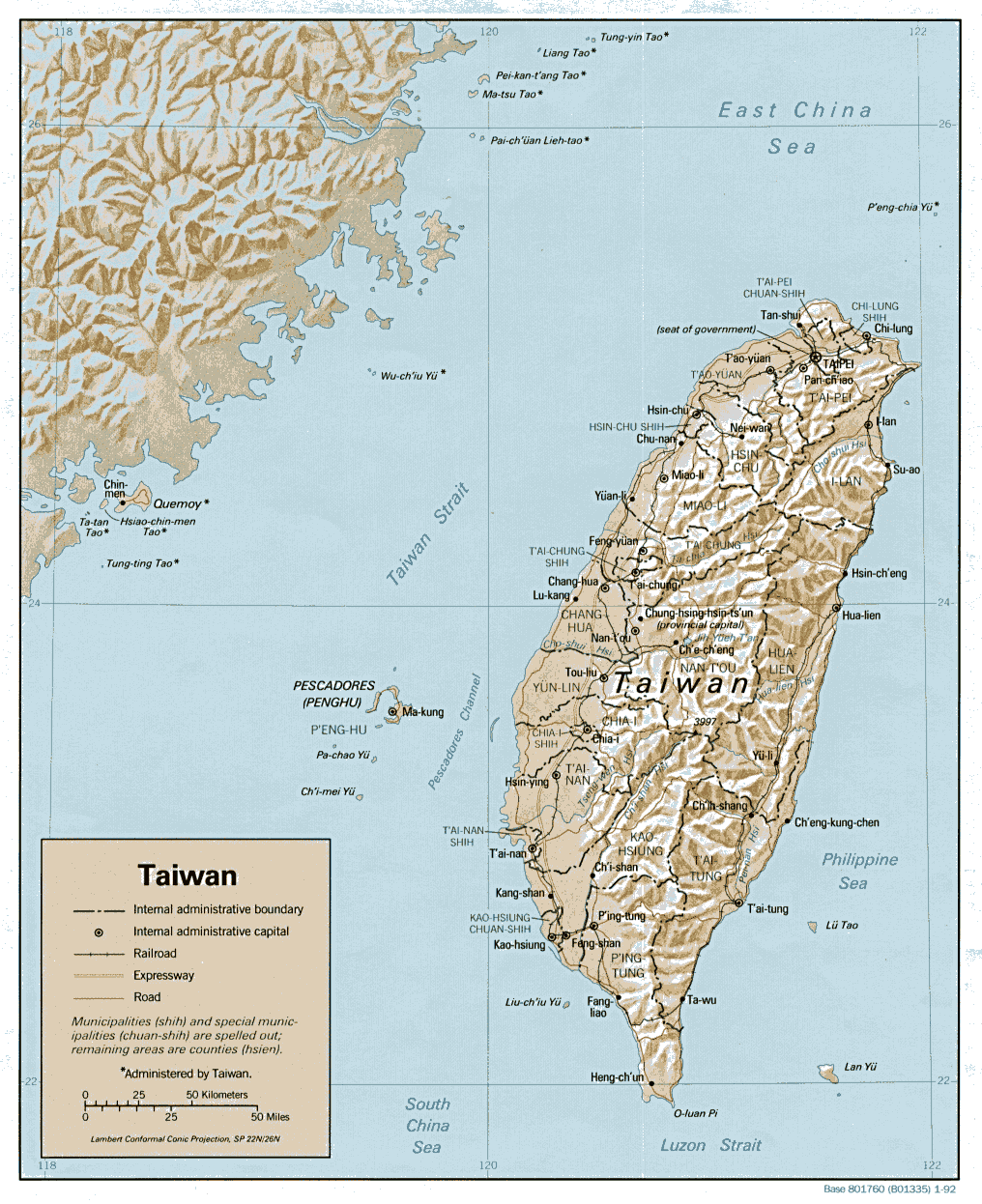 Let’s start with a few basics, and if I skip footnoting for a bit, please remember most of what I am saying is pretty basic and easily verified. Also, I lived in Taiwan for approximately four years of my life, although those fours were not sequential. Taiwan is an island about the size of New Jersey located about 130 to 220 kilometers or 81 to 140 miles from the coast of Fujian, part of the Chinese mainland. It currently has a population of over 20 million most living close to relatively close to its coastline with rugged mountains in the middle of the island.